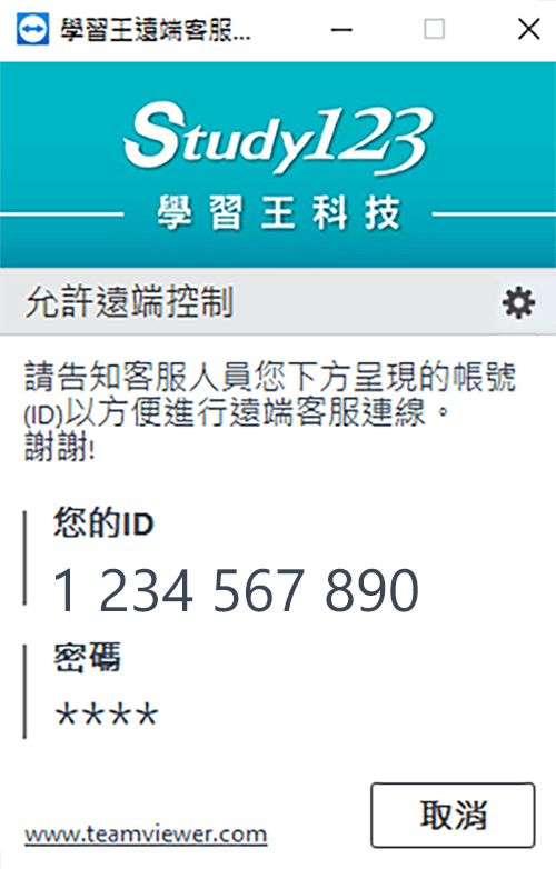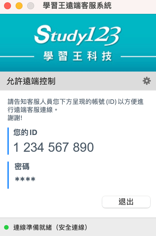 程式開啟後請告知客服人員畫面呈現的帳號(ID),以方便進行遠端客服連線