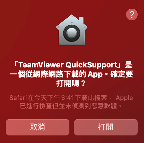 下載完成後至「下載項目」中雙擊TeamViewer QuickSupport