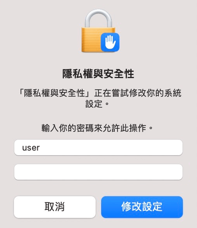 ※部分使用者需輸入系統密碼,方能開啟權限並進入下一步驟