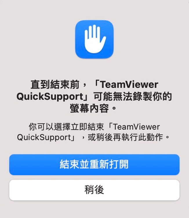 ※部分使用者需輸入系統密碼及顯示可能無法錄製您的螢幕內容提示,此時請點選「稍後」,方能開啟權限並進入下一步驟